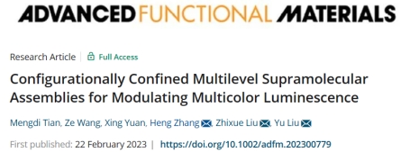 生物质化工团队与南开大学化学学院刘育教授团队合作,在用于多色发光调制多级超分子组装体的研究方面取得重要进展,相关成果“Configurationally Confined Multilevel Supramolecular Assemblies for Modulating Multicolor Luminescence”在材料科学领域权威学术期刊《Advanced Functional Materials》发表(中科院双一区TOP期刊,IF=19.924,论文链接DOI:10.1002/adfm.202300779)。论文的第一作者为捕鱼游戏赚钱2021级硕士研究生田梦笛,第一通讯作者为捕鱼游戏赚钱张恒高级实验师,第一通讯单位为捕鱼游戏赚钱平台