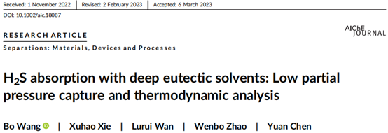 分子分离与催化赵文波教授团队在酸性气体捕集领域取得创新突破。相关研究成果以“H2S absorption with deep eutectic solvents: Low partial pressure capture and thermodynamic analysis”和“The absorption behavior of SO2 by amine alkyl organosilicon: Experimental analysis and numerical simulation”为题分别发表在化工领域国际权威学术期刊AIChE Journal和化工一区TOP学术期刊Chemical Engineering Journal上(论文链接://doi.org/10.1002/aic.18087;//doi.org/10.1016/j.cej.2023.145345)。