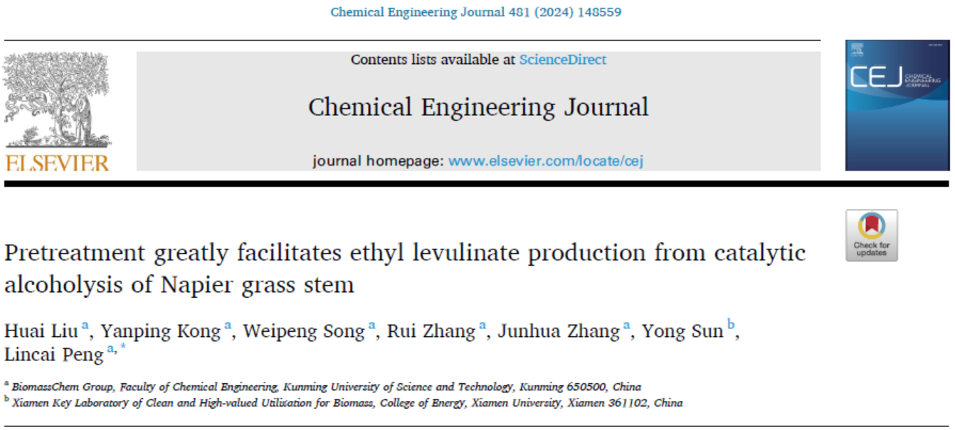 生物质是唯一可替代化石原料获取液体燃料和有机化学品的可再生资源,实现其高效转化及规模应用将有助于缓解当前能源危机、改善气候环境等问题,对经济社会的可持续低碳发展具有重要战略意义。利用生物质化学催化可获取多元醇、呋喃类化合物、有机酸及其酯类衍生物等基础平台化学品,它们是连接生物质原料和下游高附加值产品的桥梁,具有广泛的工业应用价值。近日,生物质化工彭林才教授团队在5-羟甲基糠醛、糠醛、乙酰丙酸酯、γ-戊内酯等平台化合物制备方面取得系列重要研究进展,相关研究成果发表在化工领域国际TOP学术期刊Chemical Engineering Journal(2)、ACS Sustainable Chemistry & Engineering、Fuel上,论文第一单位均为捕鱼游戏赚钱平台