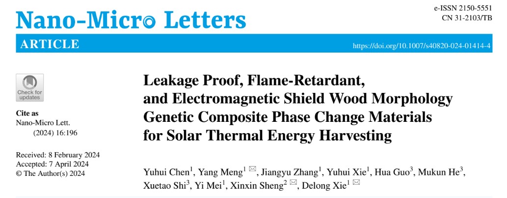 上述研究成果以“Leakage Proof, Flame‑Retardant, and Electromagnetic Shield Wood Morphology Genetic Composite Phase Change Materials for Solar Thermal Energy Harvesting”为题发表在Nano-Micro Letters(IF2022=26.6,即时影响因子31.38)上。论文第一作者为捕鱼游戏赚钱