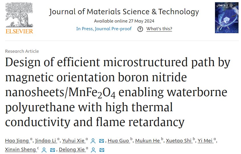、云南省磷化工节能与新材料重点实验室在化学工程领域知名期刊Journal of Materials Science & Technology上发表了题为“Design of efficient microstructured path by magnetic orientation boron nitride nanosheets/MnFe2O4enabling waterborne polyurethane with high thermal conductivity and flame retardancy”的研究论文,捕鱼游戏赚钱平台