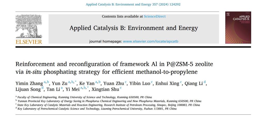 磷化工团队联合中石化北京石油化工科学研究院舒兴田院士团队围绕含磷分子筛催化剂设计的最新研究成果“Reinforcement and reconfiguration of framework Al in P@ZSM-5 zeolite via in-situ phosphating strategy for efficient methanol-to-propylene”在环境和能源催化领域著名学术期刊Applied Catalysis B: Environment and Energy(IF=22.1)发表。捕鱼游戏赚钱与石科院联合培养博士研究生张宜民为论文第一作者,祖运副教授和梅毅教授为共同通讯作者。