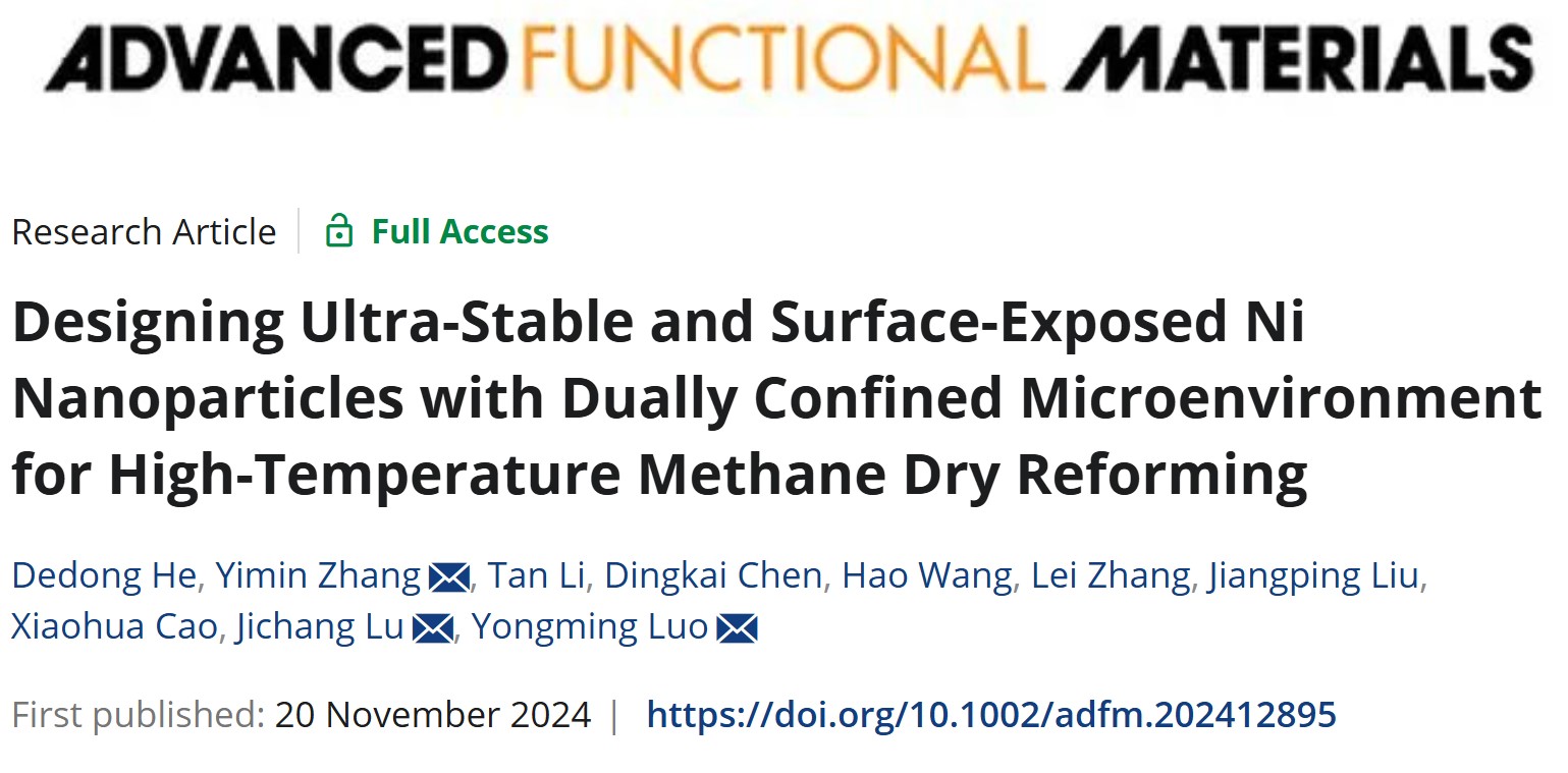 先进环境功能材料创新团队围绕温室气体资源化转化研究方面取得重要进展,相关成果以“Designing Ultra-Stable and Surface-Exposed Ni Nanoparticles with Dually Confined Microenvironment for High-Temperature Methane Dry Reforming”为题,发表在材料领域国际著名期刊《Advanced Functional Materials》上。何德东教授为论文第一作者,罗永明教授为论文通讯作者,捕鱼游戏赚钱