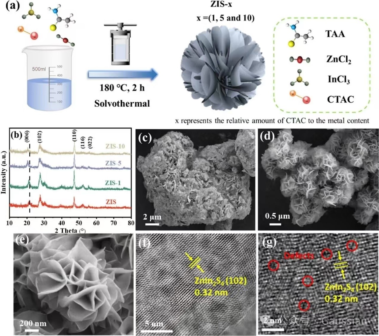 5-羟甲基糠醛(HMF)是一种重要的生物质基平台化合物,可以通过光催化选择性氧化为附加值更高的2,5-呋喃二甲醛(DFF)。ZnIn2S4(ZIS)作为常见的光催化材料,被广泛应用于该反应,但传统的ZIS基催化剂光催化氧化HMF反应活性较低。通过构筑阳离子缺陷是提高ZIS光催化氧化反应活性的有效方法,但由于阳离子空位形成能较高,有效构建阳离子缺陷充满挑战。