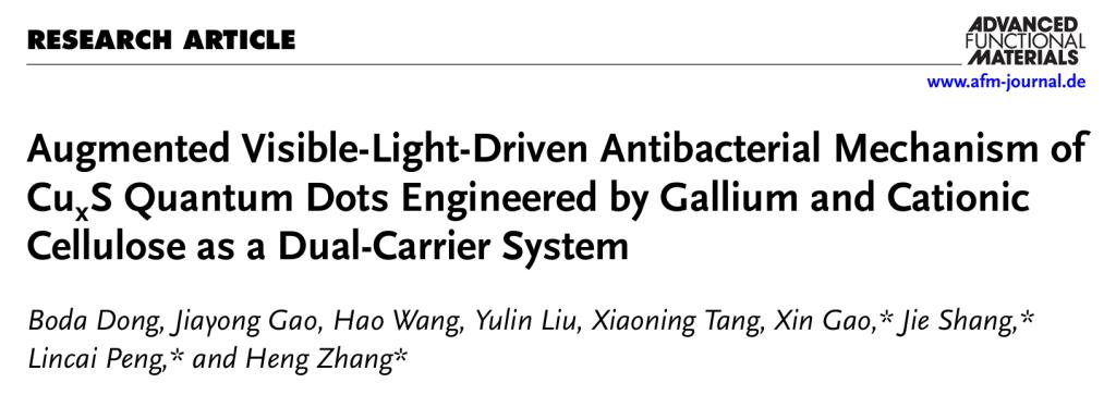 生物质化工团队与中国科学院宁波材料技术与工程研究所合作,在利用农业废弃物基纤维素调控合成高催化活性和高稳定性半导体量子点方面取得重要研究进展。相关研究成果以“Augmented Visible-Light-Driven Antibacterial Mechanism of CuxS Quantum Dots Engineered by Gallium and Cationic Cellulose as a Dual-Carrier System”(镓与阳离子纤维素双载体工程化增强CuxS量子点可见光驱动抗菌机制)为题发表在国际材料科学TOP期刊《Advanced Functional Materials》上。捕鱼游戏赚钱平台
