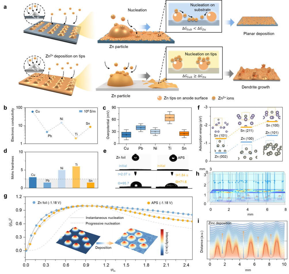 锌基水系电池因其高安全性、适中能量密度、资源丰富及环境友好等优势,在大规模储能与便携式电子设备等领域展现出广阔的应用前景。然而,其规模化应用主要受限于锌负极枝晶生长的巨大挑战。在锌的沉积/剥离过程中,由于电场分布不均和成核无序,极易诱发枝晶生长和界面失效,从而导致电池短路与性能快速衰减。因此,如何构建一种既能有效抑制枝晶生长,又兼具高稳定性与低成本的锌负极结构策略,已成为当前亟待突破的重要科学问题。