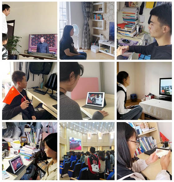 学生第三党支部的师生党员、积极分子通过手机、电视等媒体观看了大会直播。