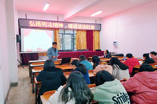 2018年12月20日晚18:00,化工院学生第一党支部在化工楼负100报告厅成功开展了以“弘扬宪法精神 建设法治社会”为主题的学习宪法活动,出席本次活动的有,院党委副书记李云燕老师,支部书记杨欢老师,支部所有党员及部分积极分子。
