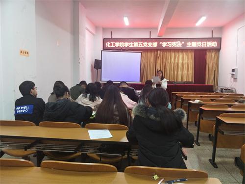 学生第五党支部在化工楼负一楼报告厅组织开展了“学习宪法”主题党日活动。学生第五党支部负责人罗晓菲老师出席了本次活动,第五党支部的全体正式党员以及预备党员到场参加。