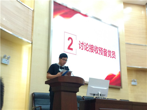 5月23日20点整,党支部召开支部大会讨论接收预备党员,4名发展对象分别汇报了对党的认识、入党动机、本人履历、家庭和主要社会关系情况,以及需要对党组织说明的问题;其入党介绍人介绍发展对象有关情况,并对其能否入党表明意见;随后,支部委员会报告了对发展对象的审查情况及对申请人是否具备入党条件的意见;与会党员对发展对象能否入党进行充分讨论,均无异议;最后,通过有表决权的正式党员投票表决,4名发展对象均以12票全票通过成为预备党员。