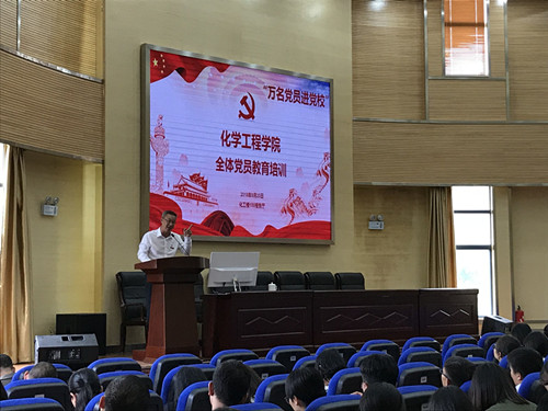 2018年9月20日,化工学院在化工楼报告厅举行“万名党员进党校”教育培训活动,学院邀请了党校的殷国禺老师和纪检监察室主任赵兴河老师对全院党员作专题报告。