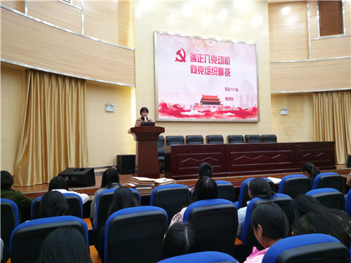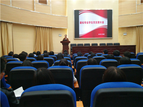 能化专业学生党支部关于讨论入党申请人能否列为入党积极分子的支部大在化工楼100报告厅举行。参加会议的有党支部书记金雯老师,全体正式党员、预备党员及部分入党积极分子。