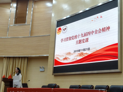 杨欢同志带大家学习了十九届四中全会的基本内容、会议的主题为“制度”,即中国特色社会主义制度,和国家治理体系和治理能力现代化;同时也带领与会同志学习了中国特色社会主义制度是党和人民在长期实践探索中形成的科学制度体系,而治理体系治理能力是中国特色社会主义制度及其执行能力的集中体现。