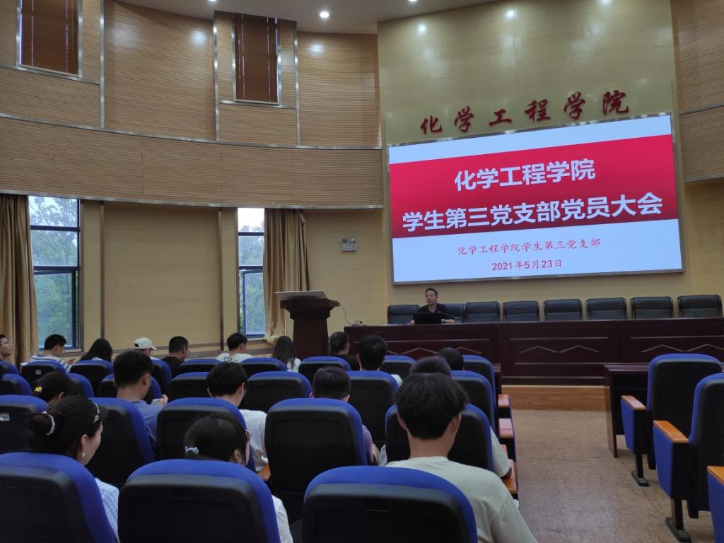 学生第三党支部在化工楼100报告厅召开支部党员大会。大会由支部书记袁敬老师主持,全体党员和16名发展对象参加了会议。