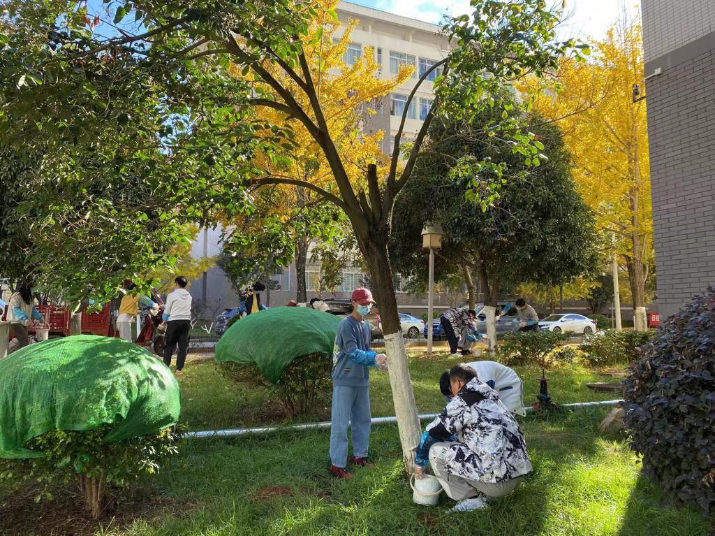 本科生党支部联合开展我为群众办实事——“美化校园,保护树木”活动,为怡园社区的树木刷白添“新装”,以抵御寒冷和病虫害,学生第四党支部书记田世垚同志、学生党员与积极分子共计100余人参与了活动。