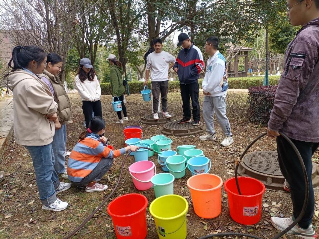 学生第二党支部开展学习雷锋志愿服务的党日活动。本次志愿活动将支部同志分为两组,一组给化工院校友林浇水,另一组清理化工楼附近垃圾,主要包括捡拾化工楼前空地、校友林内的垃圾;清理校园环境,清算卫生死角,清除白色垃圾等活动。