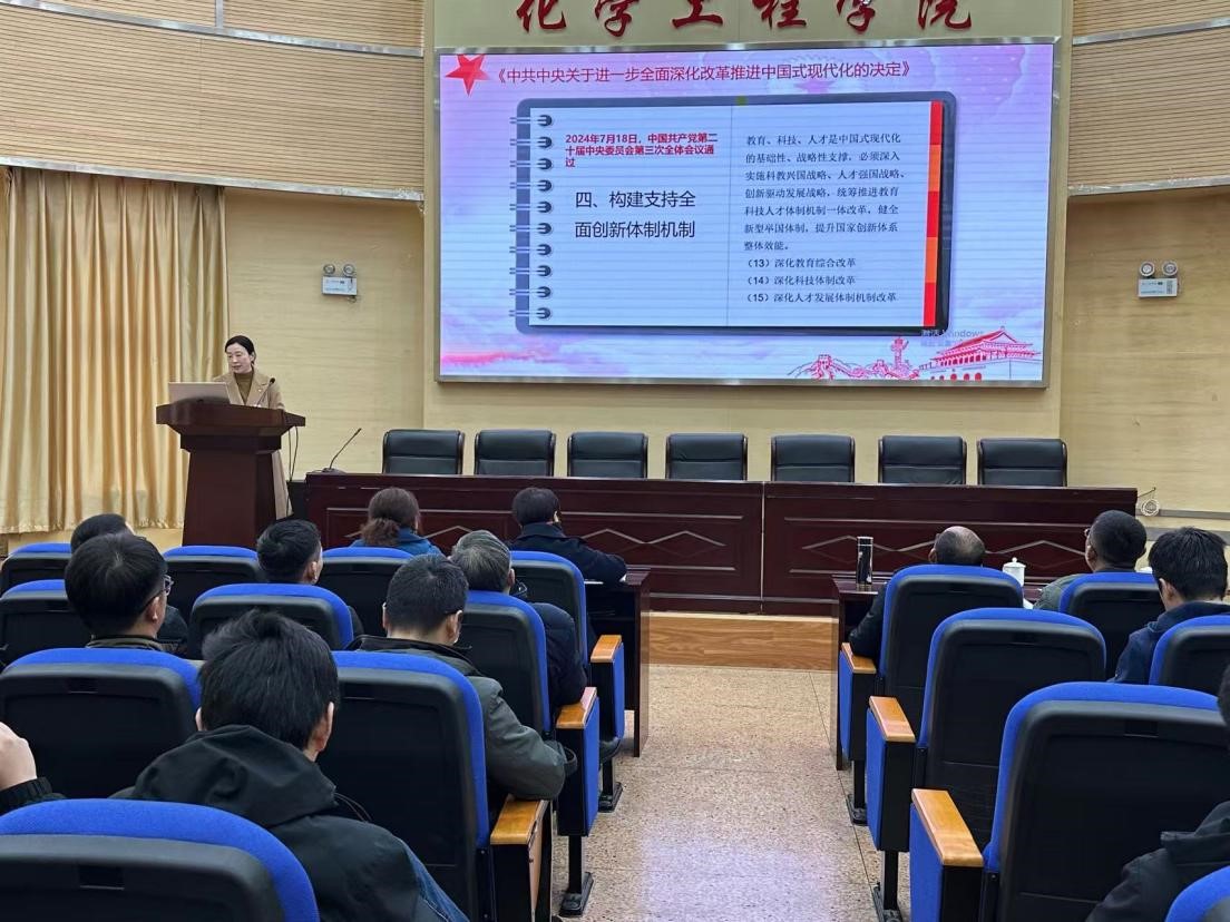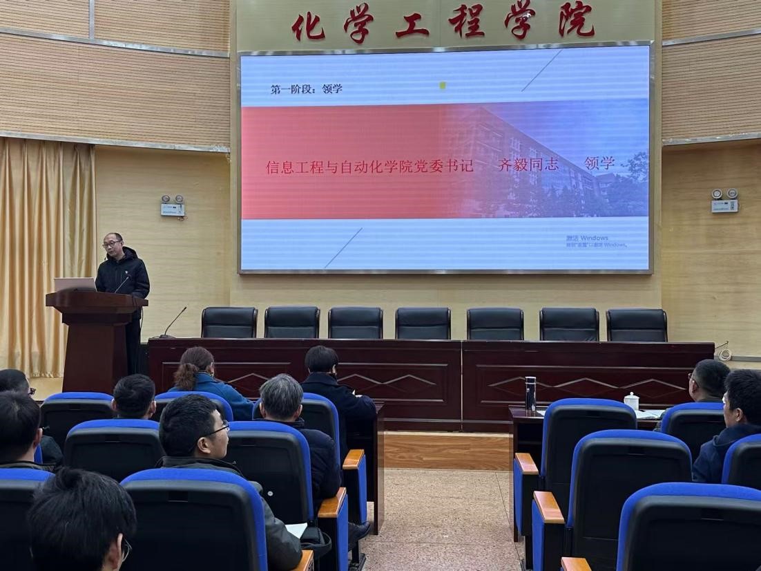 党委和信息工程与自动化学院党委共同举办了理论学习中心组联合集中学习。校党委副书记陈华仙同志、宣传部部长王仁强同志进行学习指导,化工学院、信自学院理论学习中心组成员,化工学院、信自学院学术团队负责人,化工学院全体党支部书记、支委,化工学院各系主任、副主任、科室负责人以及化工学院近三年进校的青年教师等70余人参加学习。