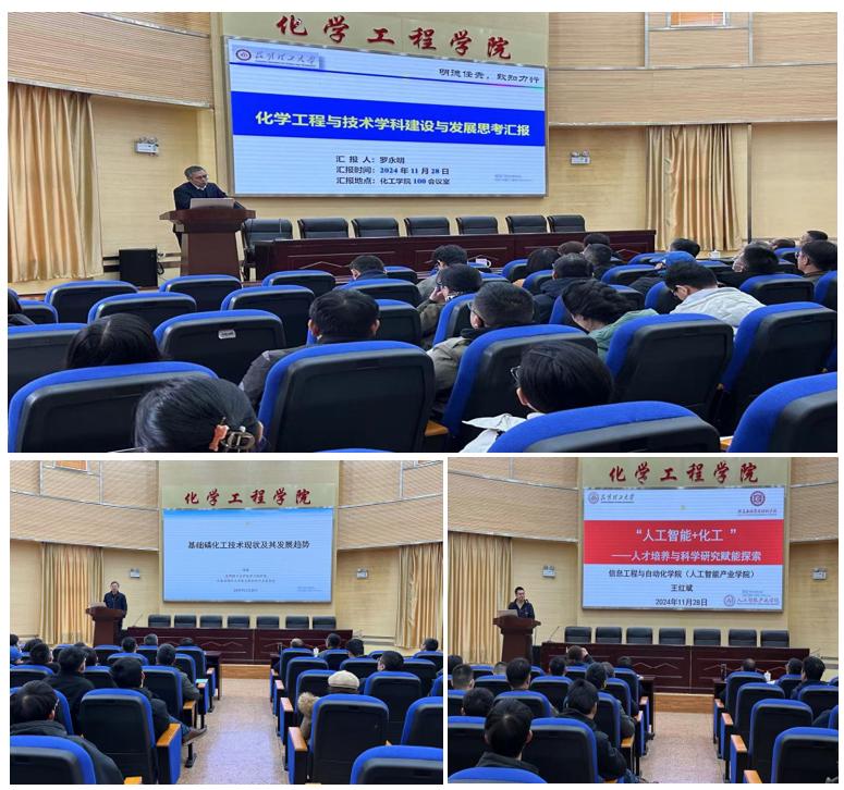 化工学院罗永明院长、信自学院王红斌院长、化工学院梅毅教授分别就“化工学院的概况和人才培养的定位”、“信自学院的发展以及学科交叉”、“将‘智能制造’融入科研与人才培养,紧密结合区域经济发展需求,推动学院高质量发展”这些重要主题进行发言。三位专家的发言内容丰富,从不同角度对人才培养、学科交叉、产业发展和社会需求等方面提供了宝贵的思路和方法。