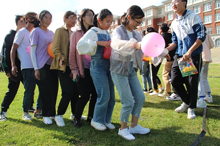 活动开始,首先由各组依次进行小品、歌曲串烧、合唱、舞蹈等才艺展示;接着,按照小组顺序进行了“你划我猜”、“气球接力”、“一字长龙”三个游戏比赛。最后由谢丽芬老师进行了总结讲话,提出了对各团学干部的期望,并为游戏比赛中获奖的小组颁发奖品。
