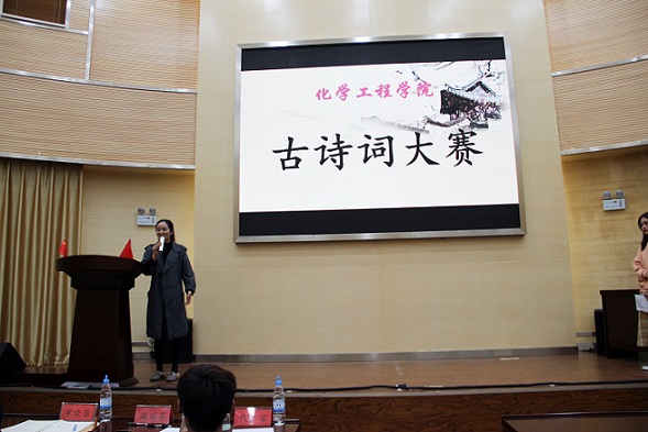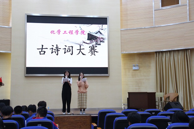 于化工楼100报告厅举行了“古诗词大赛”。团委谢丽芬老师、罗晓菲老师、学工办代广富老师出席了此次活动,2019级同学积极参加。文艺部的徐茹雅和杨娴同学担任本次主持人。