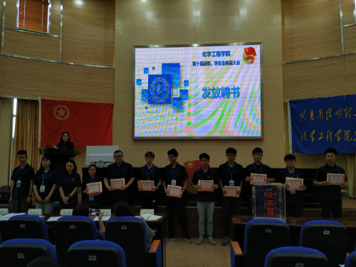 本次大会共分为六项议程:全体参会人员奏唱团歌;学生会主席徐守璟代表第十届团委、学生会工作报告;发放聘书;主席班子竞选人员做个人汇报展示;各考核小组进行答辩;最后全体第十届团学干部合影留念。学生会主席徐守璟在汇报中回顾了这一年的团学工作成果,感谢每一位辛苦付出的团学干部,希望在接下来的日子里新的团学干部们也能再接再厉,不忘初心,砥砺前行。竞选主席班子的同学在个人汇报中对自己两年的工作进行了总结,并阐述对未来团学工作的规划。在考核小组答辩环节中,各个考核小组就本组考核任务的完成程度、出现的问题等方面进行说明,并回答了老师所提出的相关问题。