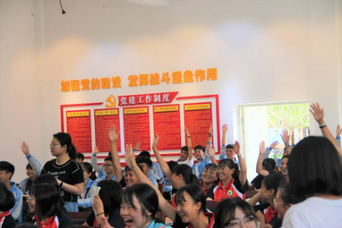 暑期三下乡社会实践团队赴屏边一中开展“青春心向党 建功新时代”纪念五四运动100周年示范团课。屏边团县委书记邓坚强同志、副书记侬芝同志,屏边一中团委书记及老师、化工学院党委副书记李云燕老师、团委谢丽芬老师、辅导员杨欢、罗晓菲老师到场,化工学院暑期三下乡社会实践队伍成员及屏边一中学生共计120余人参加。