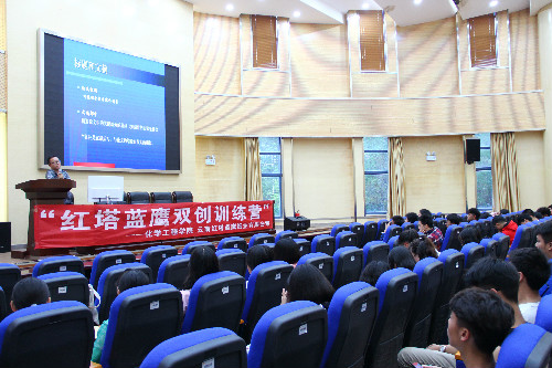“红塔蓝鹰双创训练营”第三期专题培训在化工楼100报告厅如期举行。本次活动由学院何亮老师主讲,化工院17级双创训练营成员参加,由创新创业部崔政洁同学主持。