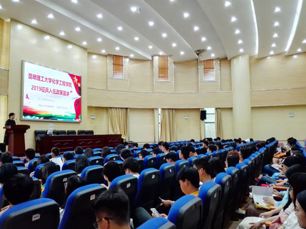 在化工楼100报告厅召开了征兵入伍政策宣讲会。学院党委副书记李云燕老师出席会议,学生办公室主任袁敬老师主持会议。