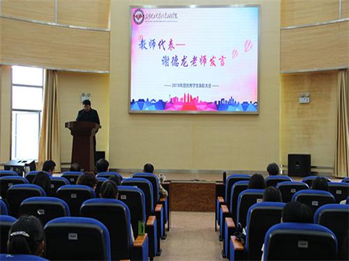 接下来梅毅院长宣读表彰决定,随后进行了隆重的颁奖仪式。颁奖结束后,教师代表谢德龙老师上台发言,他以自己的班级为实例,和班主任们谈讨了如何建设一个优秀班级体。