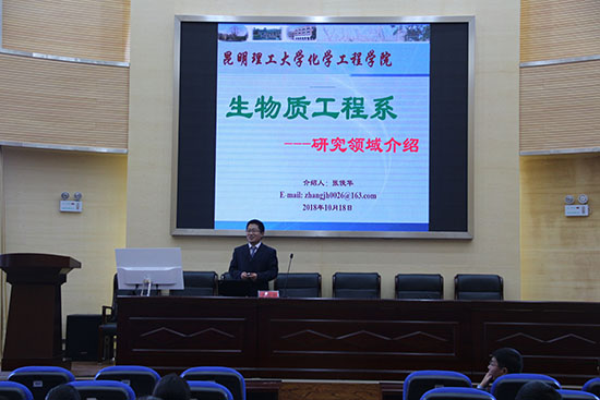 之后刘玉新老师分别从专业建设与发展、师资力量、研究方向、人才培养、承担项目及代表性研究成果这五个方面更加全面的介绍了轻化工程专业。老师精彩的讲解使得同学们对轻化工程专业有关信息表现出浓厚的兴趣,纷纷抬头聚精汇神的听讲生怕错过重要的内容。