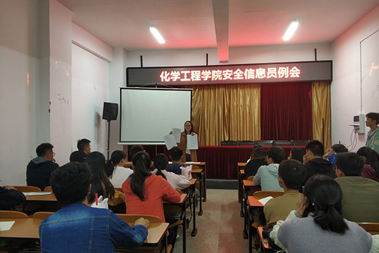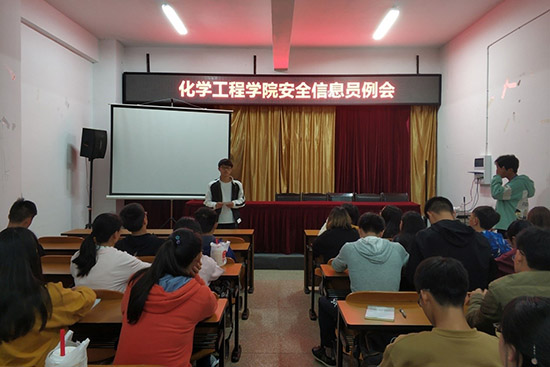 勤助会在化工楼负一楼报告厅召开了安全信息员例会。勤助会指导老师杨欢老师、18级辅导员罗晓菲老师出席本次例会;各班安全信息员及勤助会工作人员共同参与例会。本次例会由勤助会王康富主持。