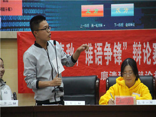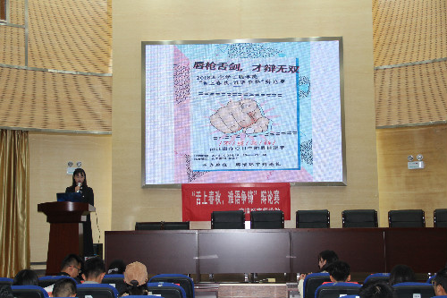 在化工楼100报告厅主办了“舌上春秋,谁与争锋”辩论赛。由李凯宇老师、程丽娟、陈敬一、袁买凤、黄涛担任本次比赛评委,由学生会,勤助会,心之苑剧社各部门中层担任本次比赛嘉宾。辩论赛由王荣同学主持。
