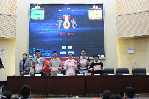 辩论结束后院团委李凯宇老师和各位评委为获奖的个人和队伍颁发奖状并合影留念。最后由袁买凤同学总结此次辩论赛的优点与不足并提出希望和祝愿。
