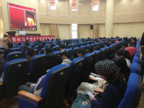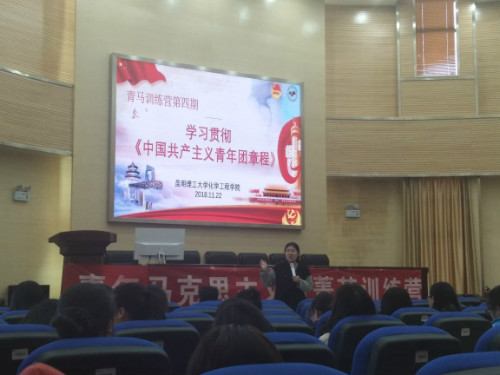 本次活动分为三项议程,在第一项议程中,由团委副书记彭芳上台发言并宣布活动开始。在第二项议程由各小组代表上台讲解本小组ppt,汇报对团章的认识和学习情况。第三项议程由团委李凯宇老师对本次活动进行总结,指出各小组在汇报中存在的问题,并做工作指导。