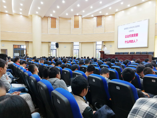 化学工程与工艺2015届优秀校友章威结合自身求职、工作经历,从行业、岗位选择,学业与就业、职场发展等方面为同学们分享了“企业究竟需要什么样的人”以及“如何成为企业需要的人”,通过互动交流,现场为同学们答疑解惑。