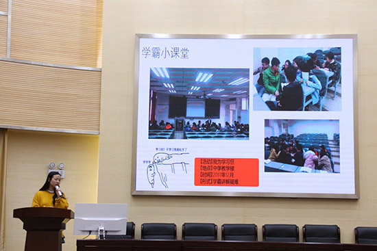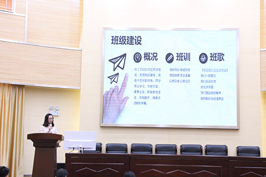 然后轻化151班王健同学提出了班级的“大树理论”,他们相信,只要每个同学的心紧紧凝聚在一起,这棵“树”一定会成长为“参天大树”。化工152班着重讲解了学风建设,他们班级积极参与助研项目、“大创”项目,创建了优良的班风学风。