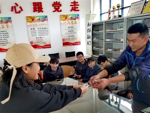 紧接着,进入第二项活动——微信有奖抢答。由张英提问,同学们在微信群里抢答,一共5道题,答对最多者获得相应奖品,最终,李鑫杰同学以答对三题获得最终胜利。本次团日活动的最后,团支部全体成员肃立,在团歌中重温入团誓词。