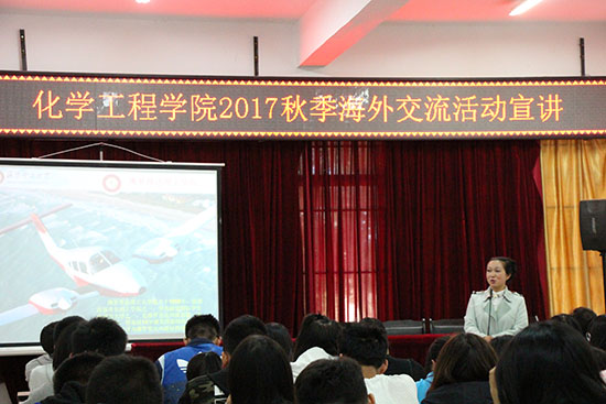 本期学习指导室由化工173班石丹阳同学主持。首先,国际学院陈老师为大家介绍昆明理工大学的海外交流项目,详细讲解了优秀本科经济困难生、优秀本科生、研究生分别要拥有什么条件以及要通过什么样的审核,才能借助学校平台,走出国门,通往海外,增长更多的见识。随后陈老师就适合化工学子交流的佛罗里达理工学院和北亚利桑那大学做详细介绍,同学们被深深吸引,期待有朝一日自己能够到海外求学,拓展本领。