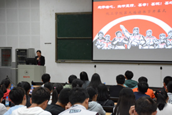 2017年9月29日19:00,化学工程学在中心100举办了第九届读书节开幕式,本届读书节主题为“走学者心,生书墨情,甚幸!甚悦!甚好!”。院党委副书记李云燕老师、勤助会第十一届指导老师李覃老师、勤助会本届指导老师李凯宇老师出席了本次开幕式,此外我们还有幸邀请到了云师大博雅书友会、昆工读者协会、昆工醉雨轩文学社、昆工行知文学社的30余名嘉宾与捕鱼游戏赚钱2017级全体新生共同参与本次活动,本次活动由读书社副社长胡轶男主持。