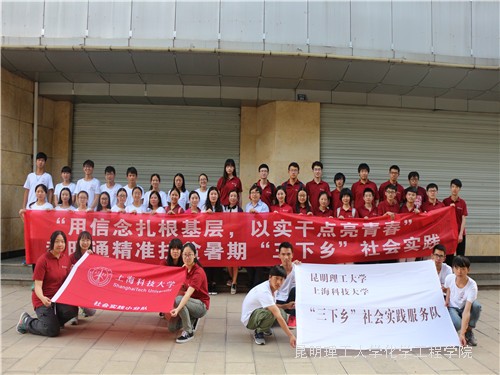 为树立大学生扎根基层,助力脱贫攻坚的理想信念,2017年7月19日,昆明理工大学与上海科技大学共同开展的“用信念扎根基层,以实干点亮青春”暑期“三下乡”社会实践活动在昭通拉开序幕。本次社会实践由昆明理工大学化工学院党委副书记李云燕老师指导,化工学院团委书记张祎颖老师、上海科技大学叶朝锋老师、陈维雯老师带队,共计46名志愿者参加了此次社会实践活动。