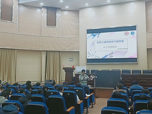 勤工励志互助会勤学社主办的学习指导室之化工原理辅导在化工楼100报告厅举行,本次活动由勤学社孔鑫鑫同学主持。