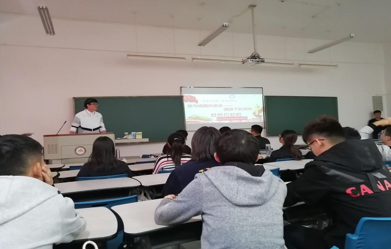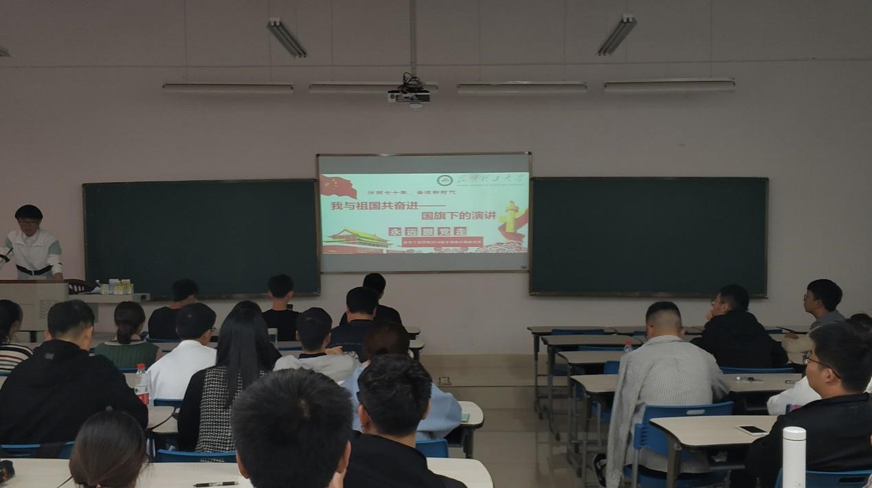2019级专硕班全体研究生在公教楼250教室举行“我与祖国共奋进——国旗下的演讲”特别主题团日活动。