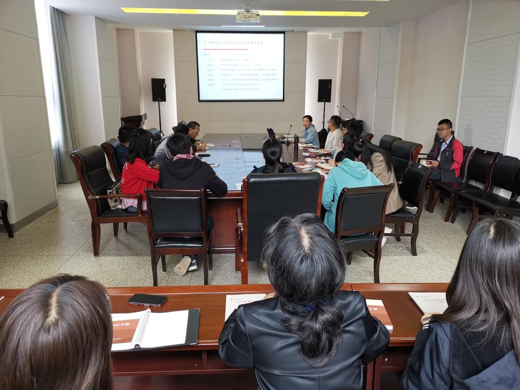 学院党委副书记李云燕全面梳理了十八大以来国家和学校出台的关于高校思想政治工作的文件精神,共同学习了“立德树人”的根本任务到“三全育人”,以及“十大育人体系”到“课程思政”,从昆明理工大学“十大育人体系三年行动方案”到“2020年主题教育活动计划”、“日常思想政治教育若干措施”等要求。通过学习,加强班主任对“思政”进“班会”的认识,指导班主任开展好“双周一班会”工作。提出班主任、辅导员要通过“一周一简讯、双周一班会、一月一主题、一月一展示、双月一作品、双月一研判”等六项措施协同做好学生思想政治教育工作。