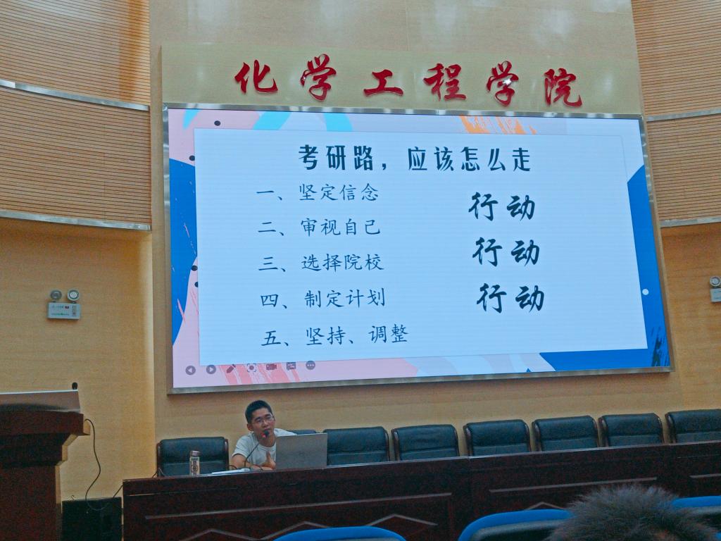 在化工楼100报告厅对2018级有意升学考研的同学进行了专题指导,本次指导由田世垚老师主讲,2018级100余名有考研意愿的同学参加了学习。