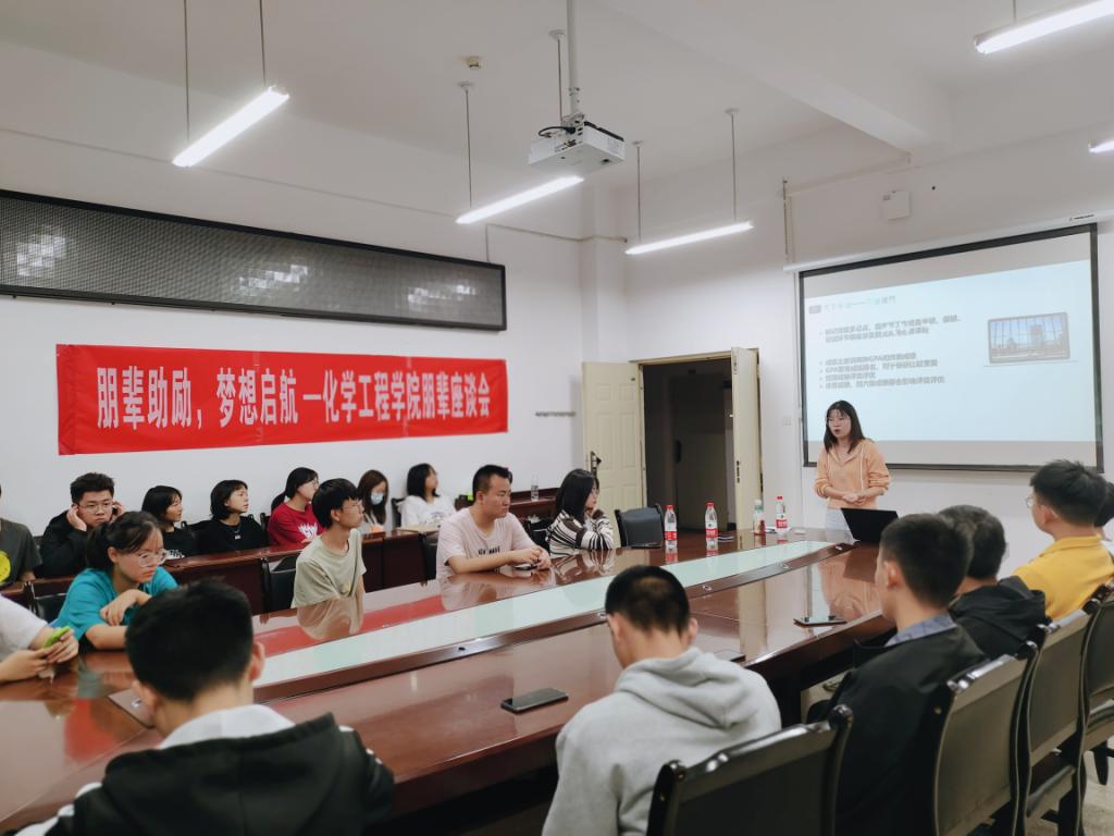 在化工楼三楼338会议室顺利举办了第一期“朋辈座谈会”,本次活动我们邀请到了保研到中国石油大学刘玉丹学姐为大家分享学习生活的经验。