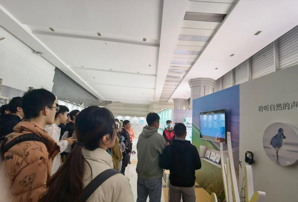 于昆明理工大学呈贡校区红土会堂组织了90余名化工青年参观盐城黄海湿地生物多样性保护时间与成果展。