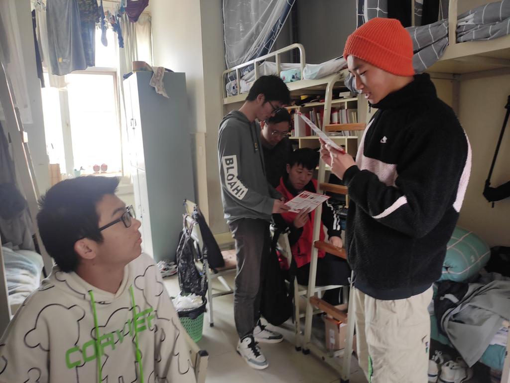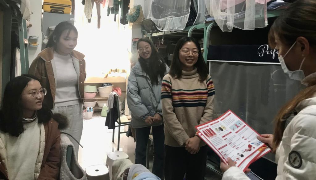 团学骨干在憬园学生宿舍开展了防艾知识宣传活动。