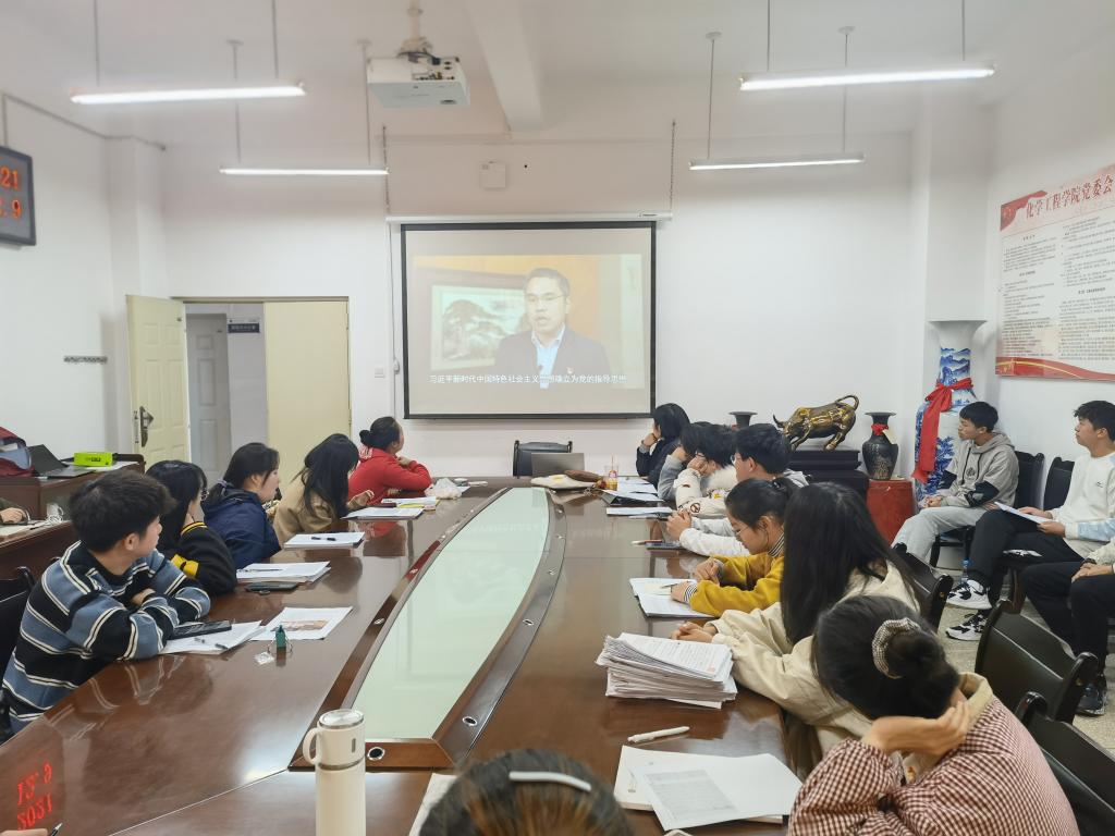 最后,李老师带领在场的团学骨干学习了党的十九届六中全会精神。其中“两个确立”,第一个确立,确立习近平同志党中央的核心全党核心地位;第二个确立,确立习近平新时代中国特色社会主义思想的指导地位。在以习近平同志为核心的党中央坚强领导下,全面贯彻习近平新时代中国特色社会主义思想,大力弘扬伟大建党精神,勿忘昨天的苦难辉煌,无愧今天的使命担当,不负明天的伟大梦想,为实现第二个百年奋斗目标、实现中华民族伟大复兴的中国梦而不懈奋斗,青年一定能够继续做出好成绩,在新征程上铸就新的时代辉煌、创造新的历史伟业。