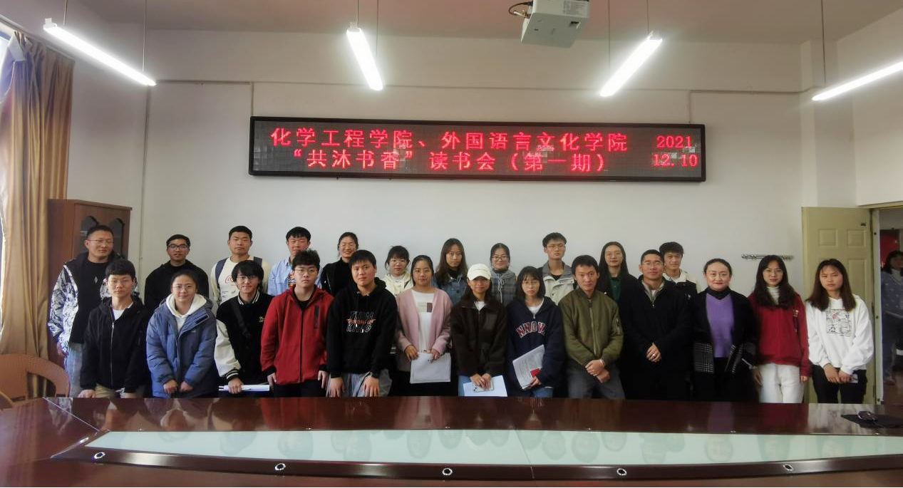 与外国语言文化学院共同开展以“共沐书香”为主题的读书分享会,化学工程党委副书记宁玲、辅导员田世垚,外国语言文化学院团委书记李雪瑜、马倩博士、石洋老师、潘霞老师及三十余名读书会爱好者共同参与了活动。本次读书会由石洋老师为大家分享海明威的短片小说《白象似的群山》。