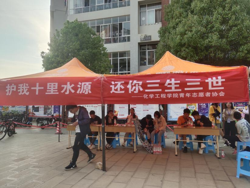 青年志愿者协会于2021年3月20日在恬园蜜雪冰城前举行了以“护我十里水源,还你三生三世”为主题的世界水日活动。化工院共240名学生参加了此次活动。